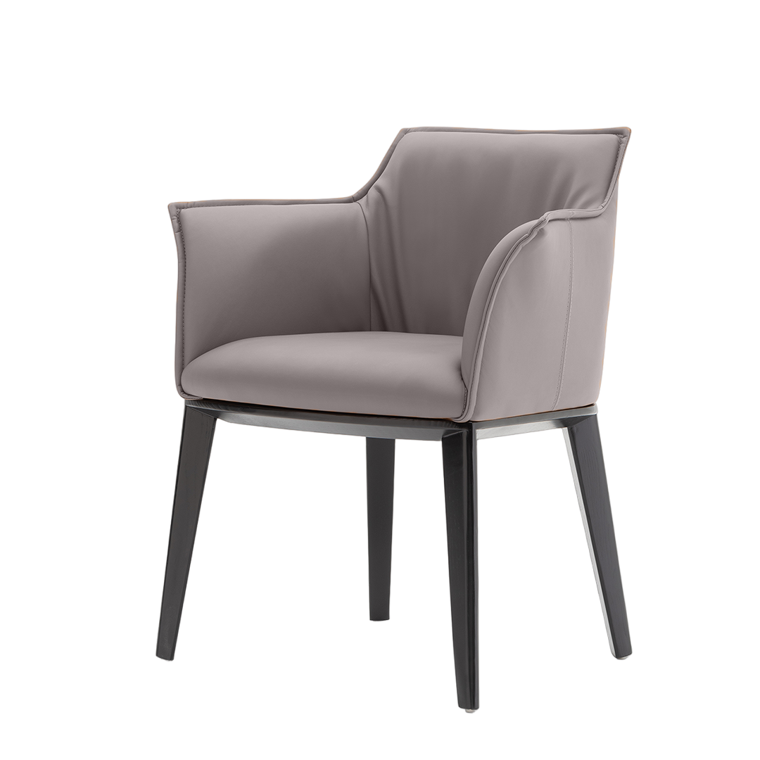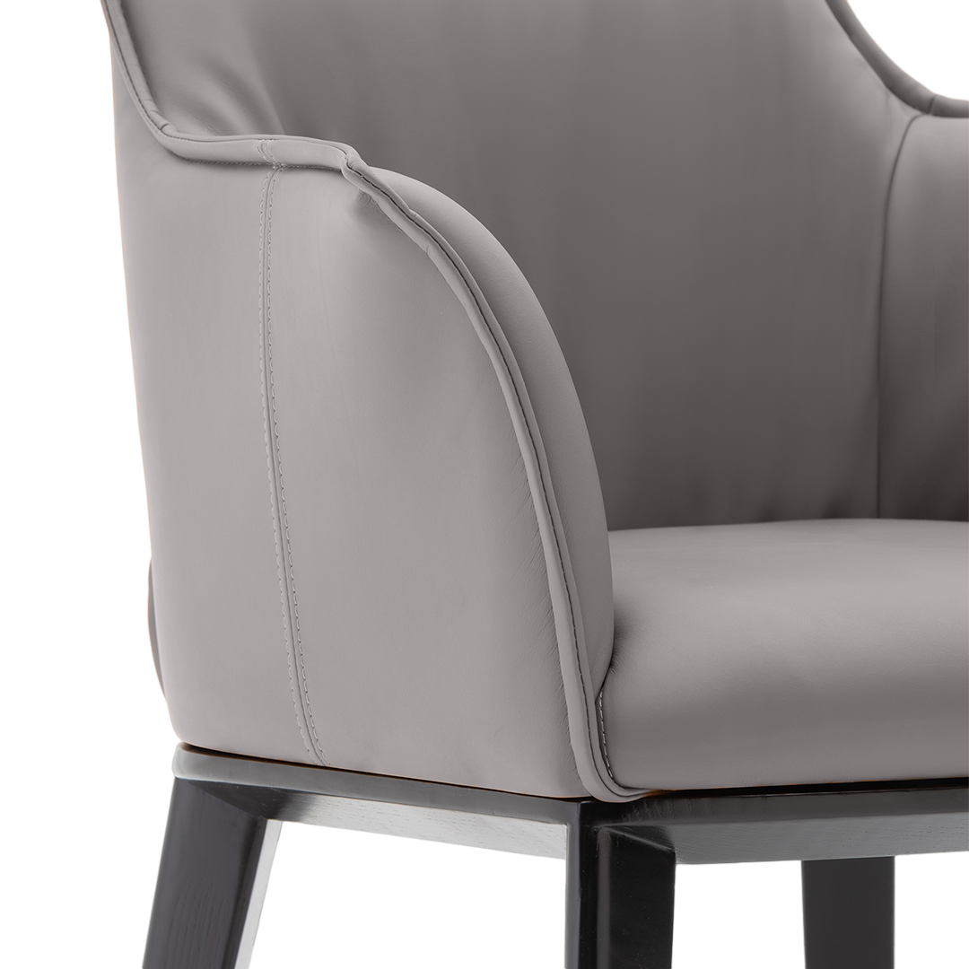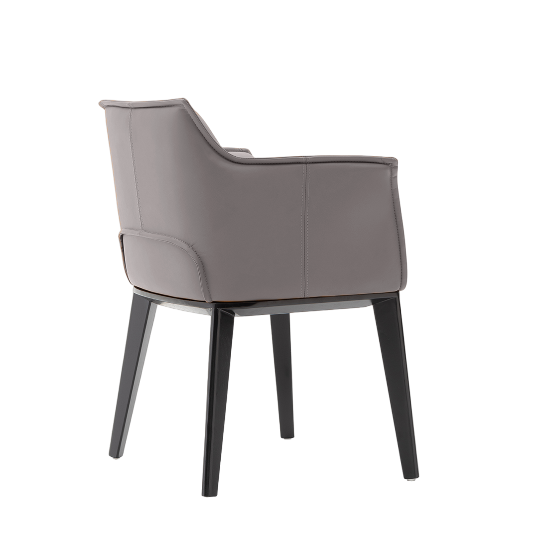 Experience refined comfort and style with this elegant chair upholstered in soft micro leather (HM-14). Supported by sturdy solid wood legs finished in a sophisticated smoke color, this chair combines durability with a modern aesthetic, making it a perfect addition to any living or dining space.