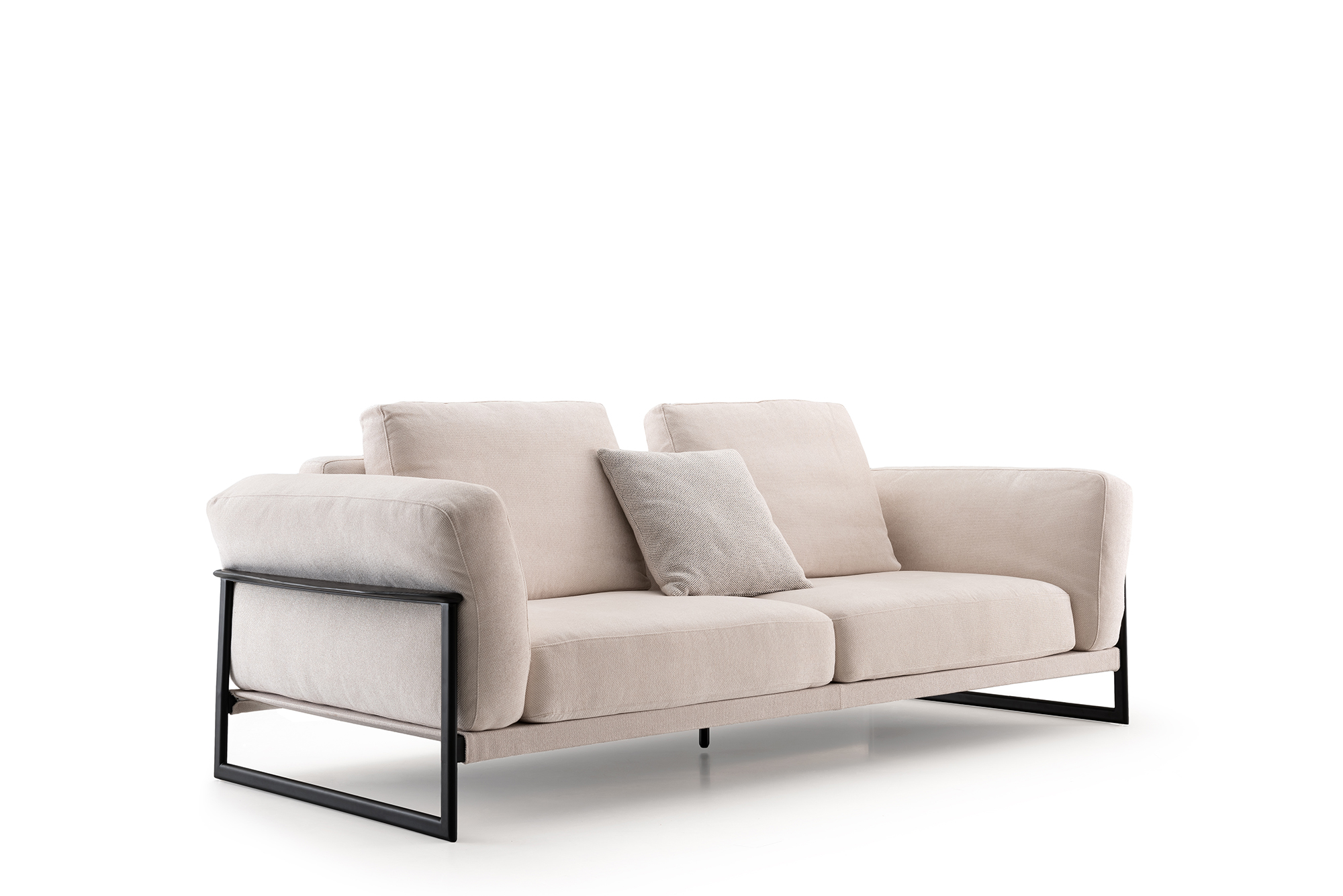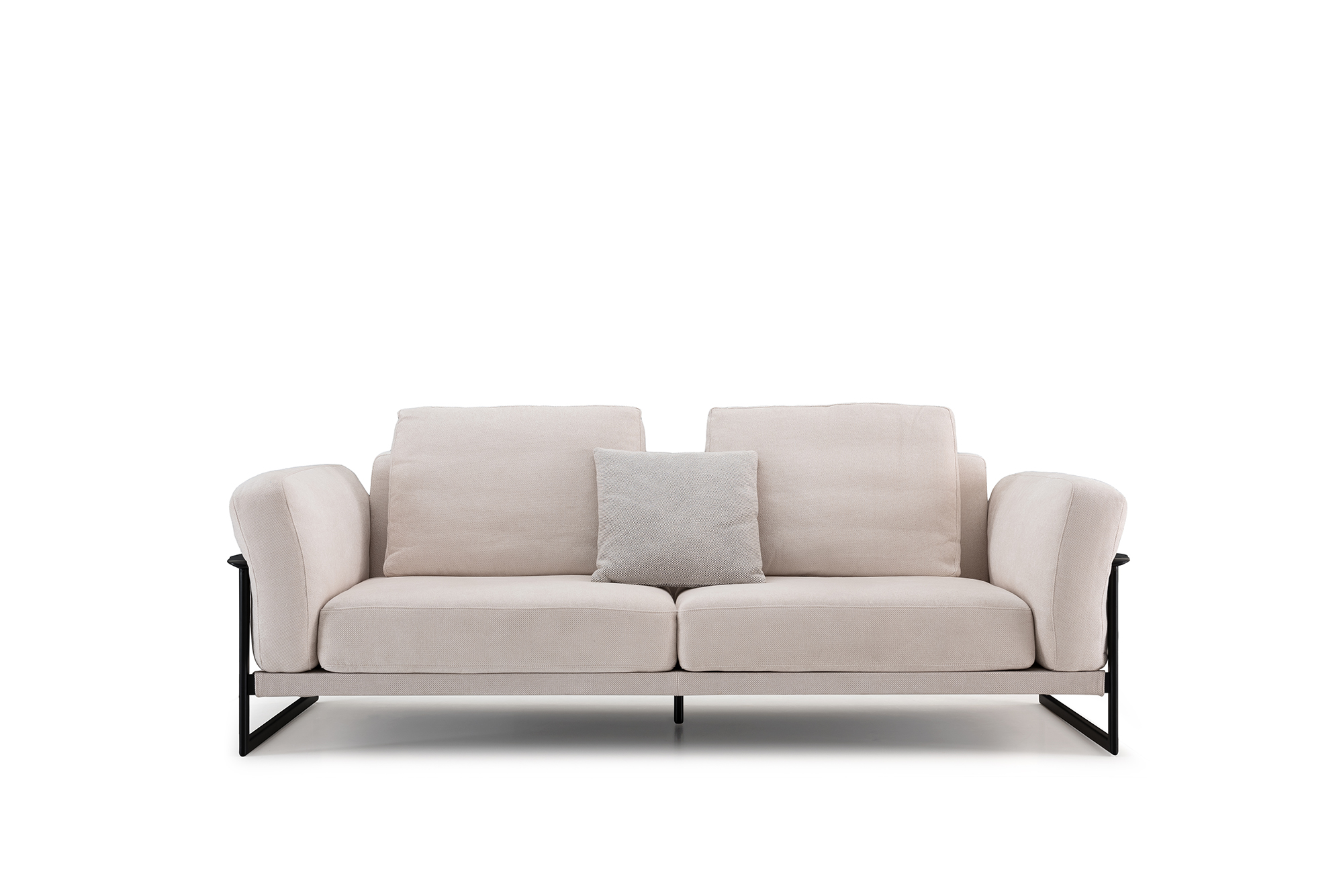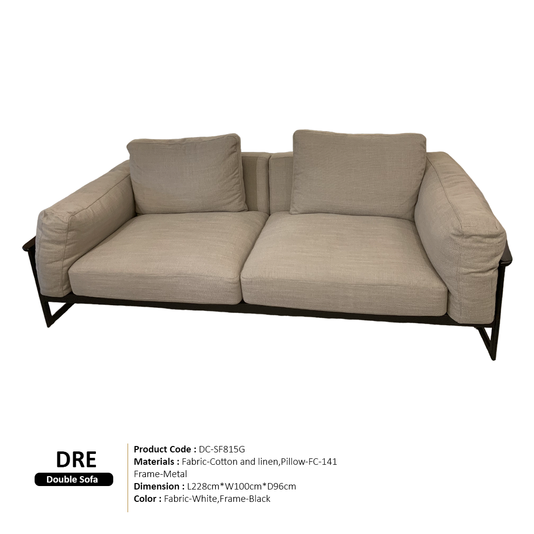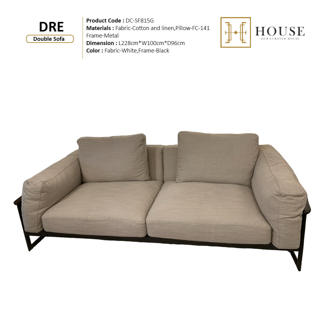 Elevate your living space with this elegant sofa, upholstered in pristine white fabric (SFD-1809-10) that adds a fresh and inviting ambiance. Complemented by stylish FC-141 pillows, this piece combines comfort with contemporary design. The sturdy metal frame ensures lasting durability and support, making it both a chic and reliable seating option for your home.