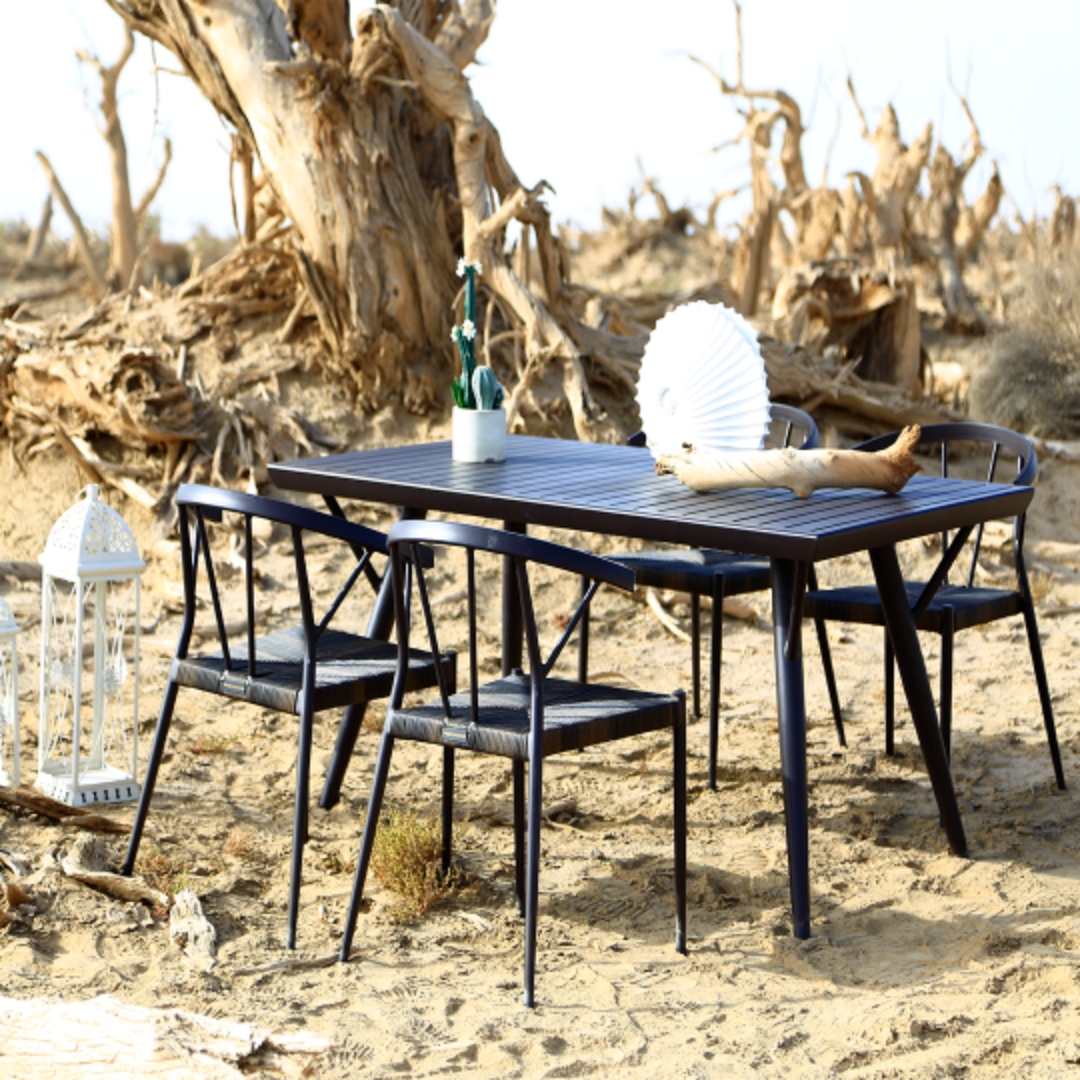 A modern grey outdoor table featuring a robust powder‑coated aluminum frame and slatted top for lasting durability, effortless maintenance, and stylish drainage functionality—perfect for both residential and commercial outdoor settings.