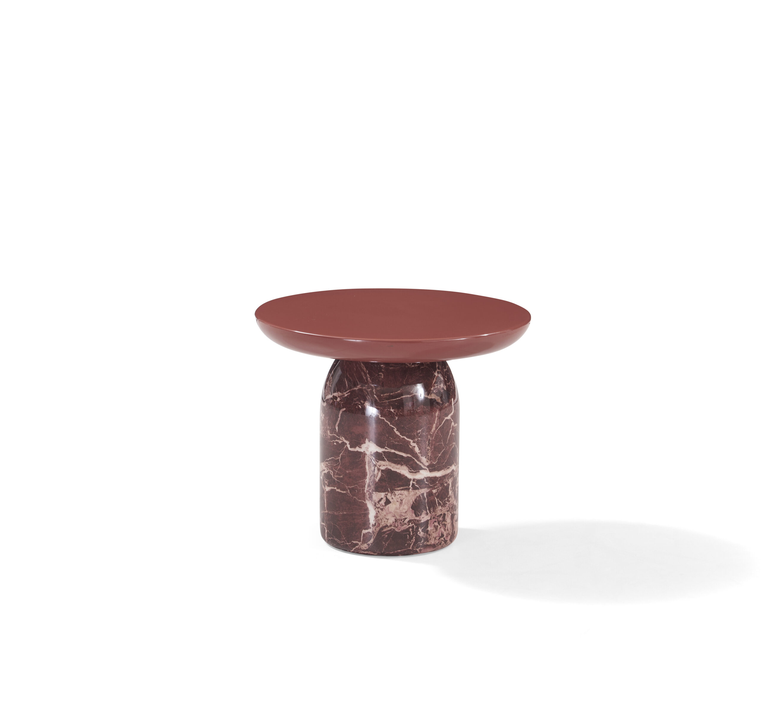 Design Type Color Materials Wooden structure in PU lacquer finish table top, wooden base in marble (Rosso Levanto finish) -