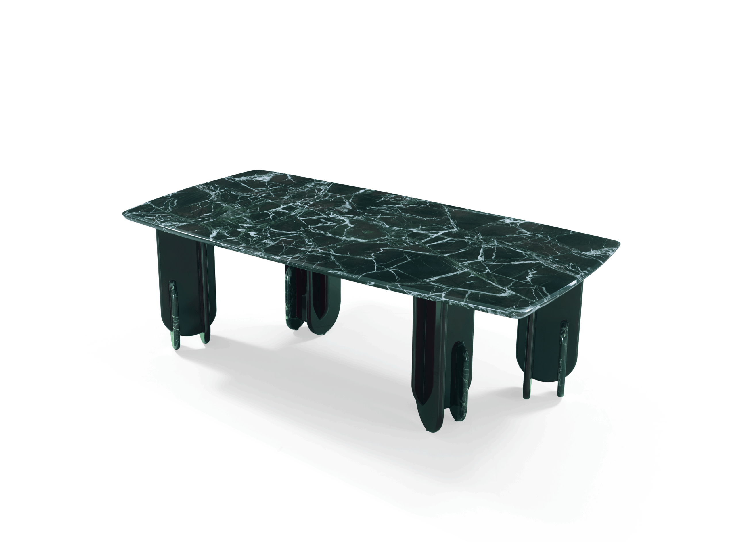 Bold, refined, and artfully designed, the RYLAN Dining Table is a statement of modern luxury. It features a stunning C-8108 green marble finish tabletop, bringing rich color and natural veining into focus. The base is crafted from premium MDF with a matching green PU lacquer finish, complemented by a decorative marble-finish panel that enhances its sculptural appeal. The RYLAN Dining Table blends contemporary aesthetics with timeless materials—perfect for elegant dining spaces.