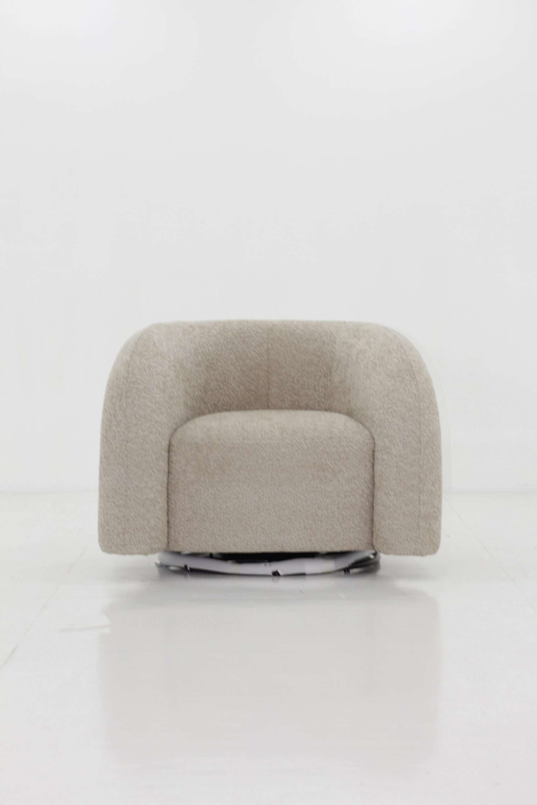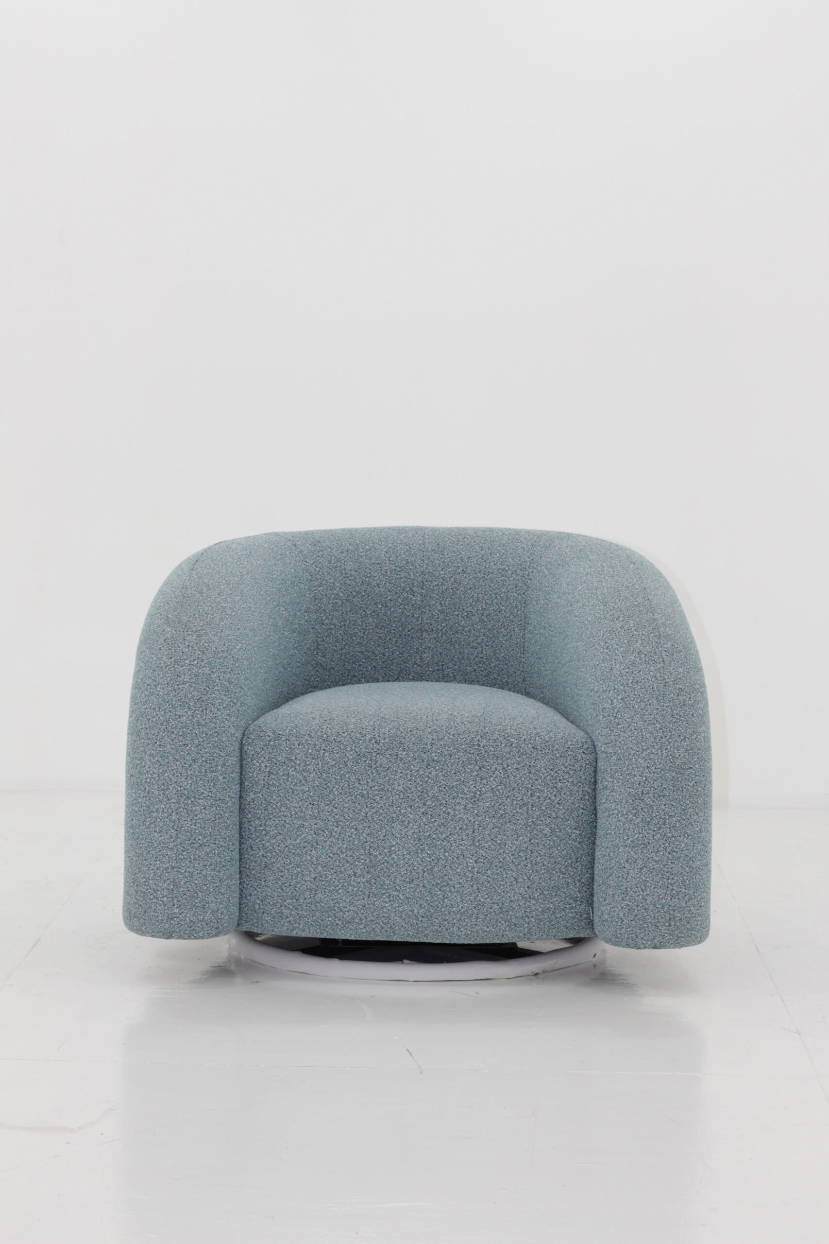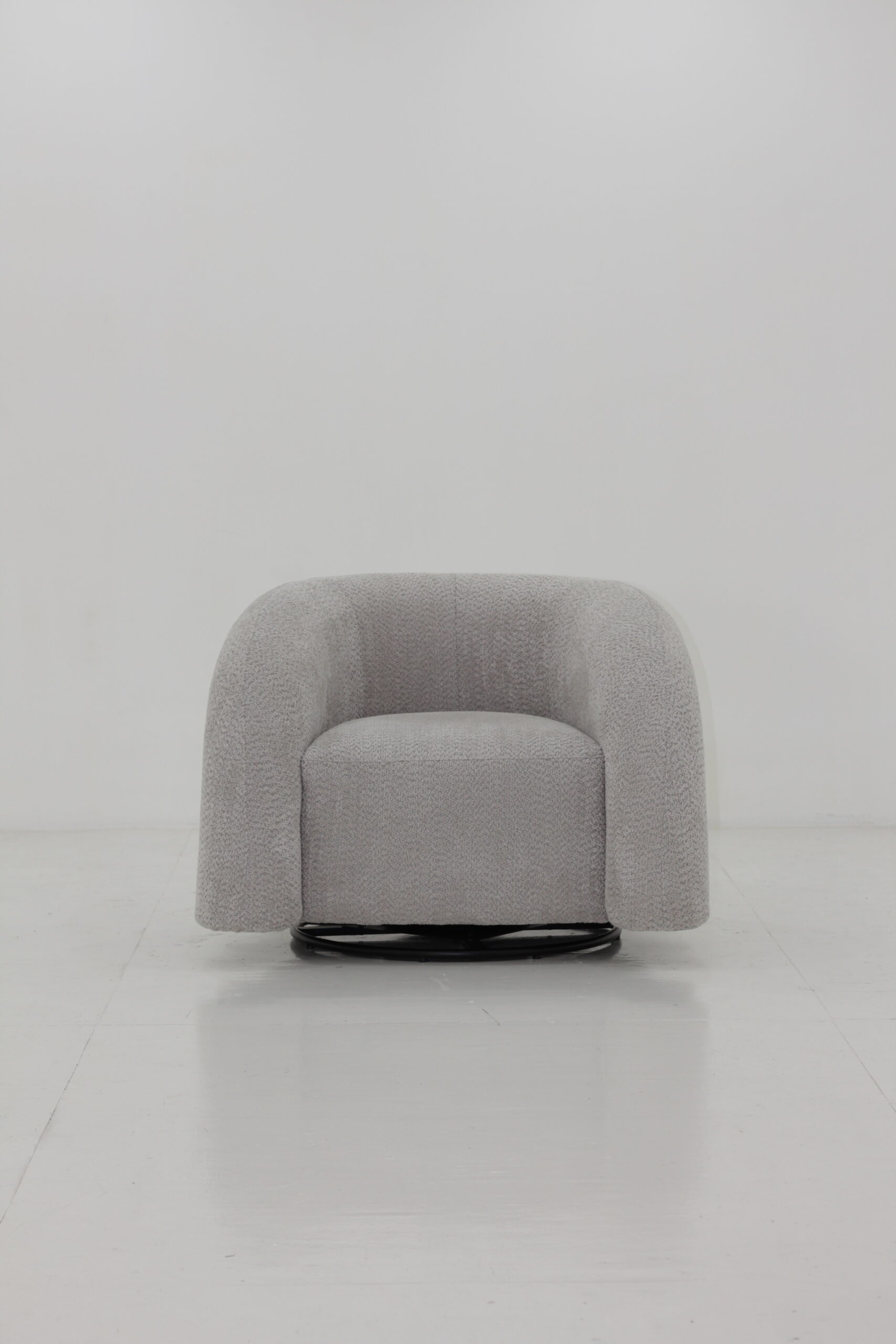 Modern Swivel Sofa featuring a durable solid wood inner frame and plush high-density foam cushioning wrapped in soft fabric upholstery. The steel swivel base with a powder-coated finish adds strength and a contemporary touch, combining comfort, style, and functionality.